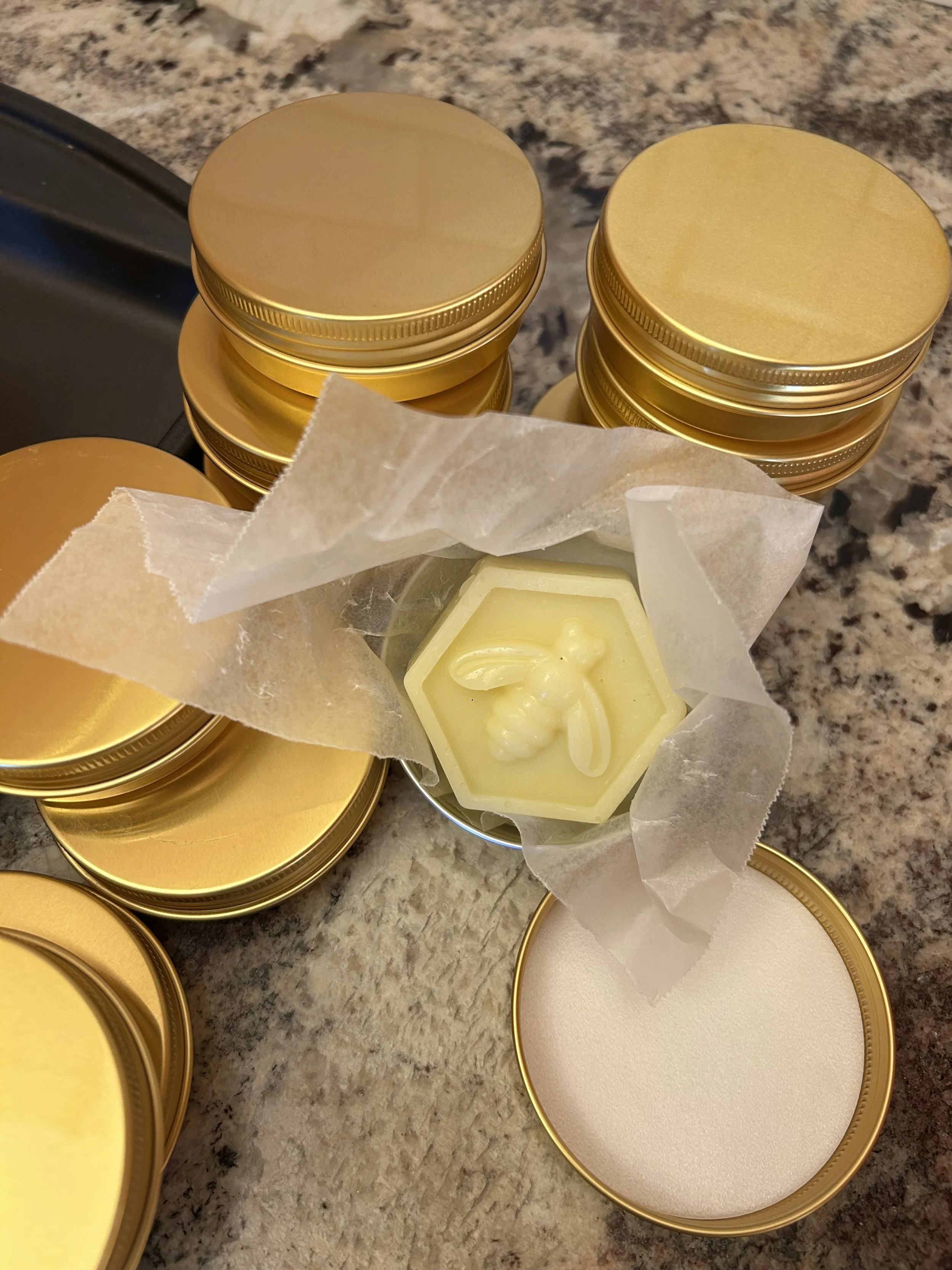 Lotion bars - our original product, still our most popular! Handmade with beeswax and other soothing ingredients for highly-concentrated moisture that lasts a long time and helps skin to feel its best. Small-batch production, so these bars come in many sizes and can easily be customized just for you!